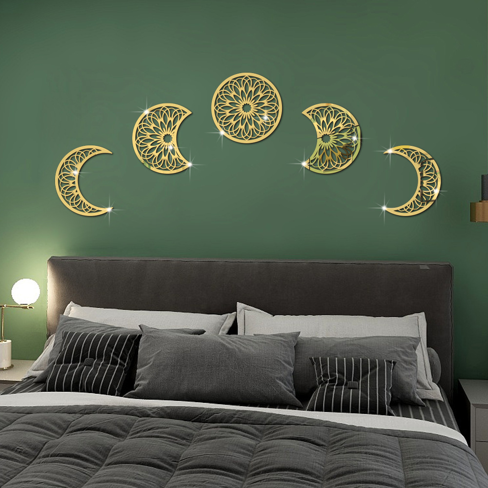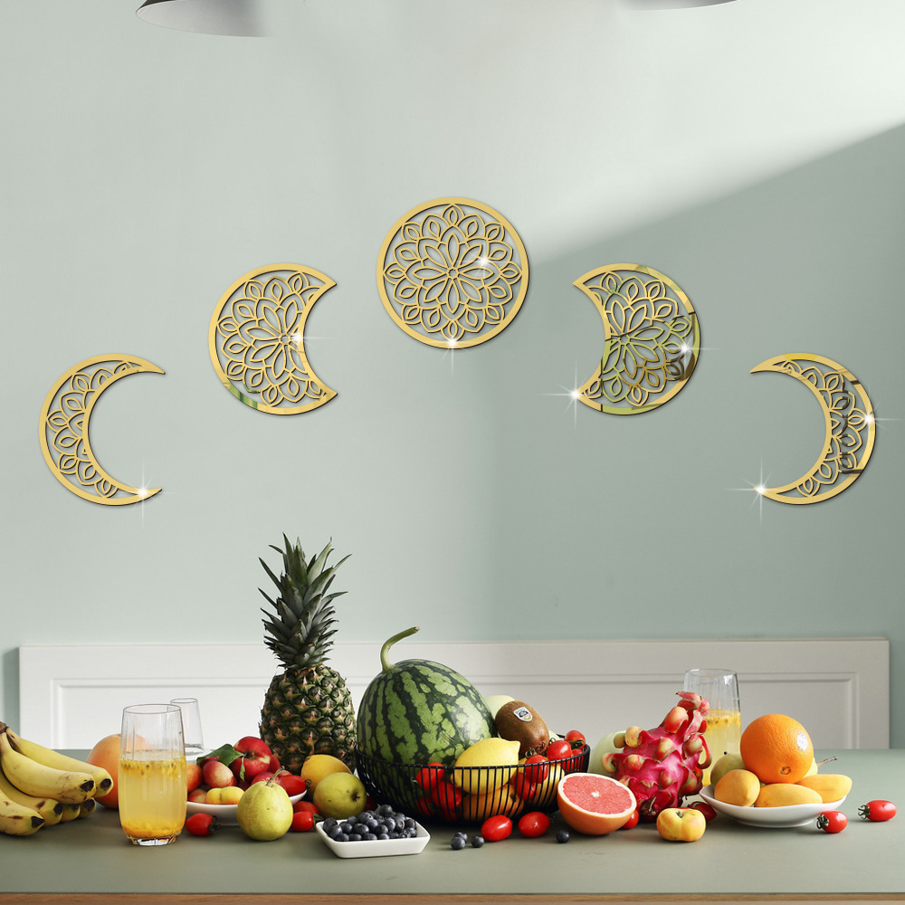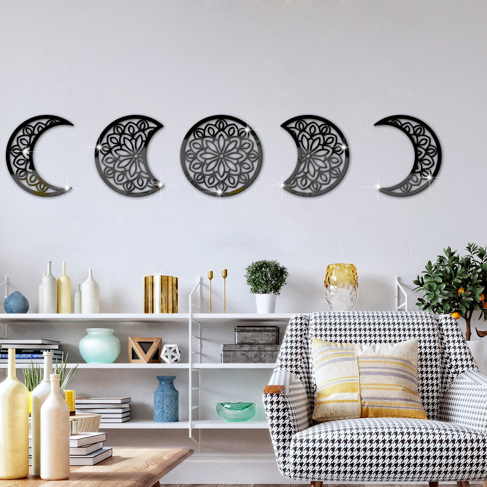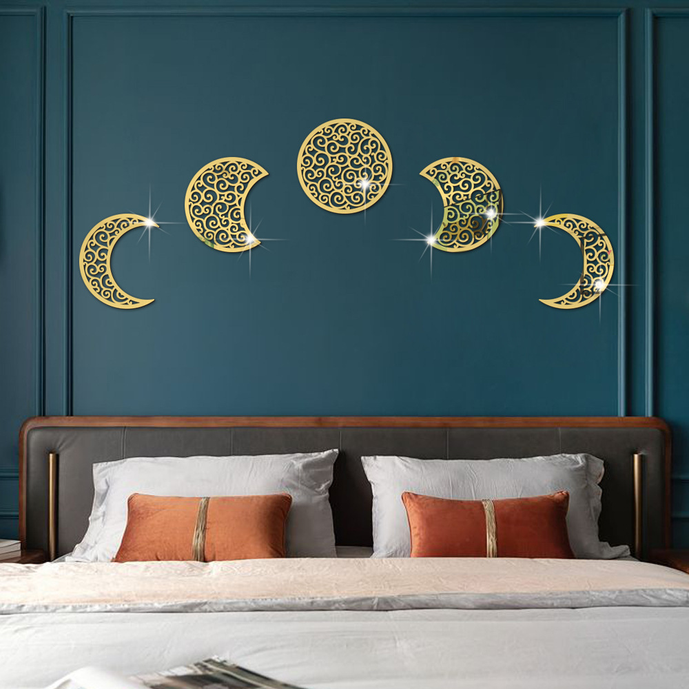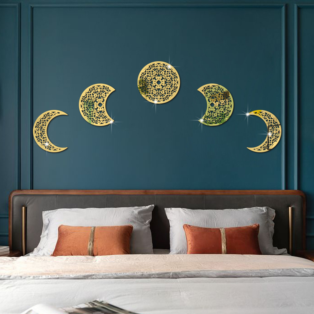 Pegatina de espejo acrílico con cambio de fase lunar estereoscópico 3D para decoración del hogar, autoadhesiva para pared