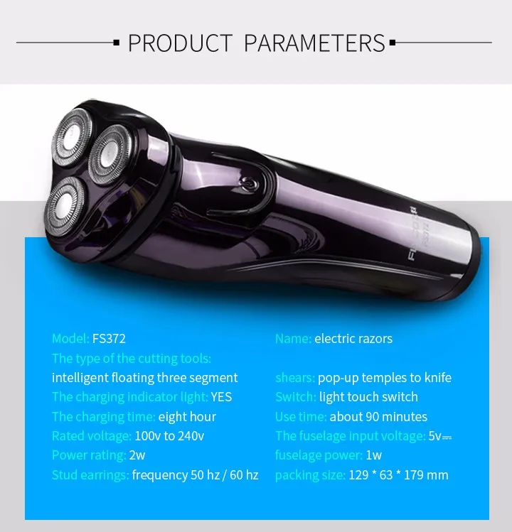 Afeitadora eléctrica lavable profesional FLyco, recargable, 3D flotante, FS372