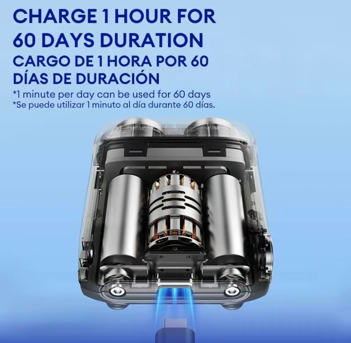 A 1-hour Type-C fast charge provides up to 60 days of daily 1-minute shaving. Reliable and efficient for long trips.