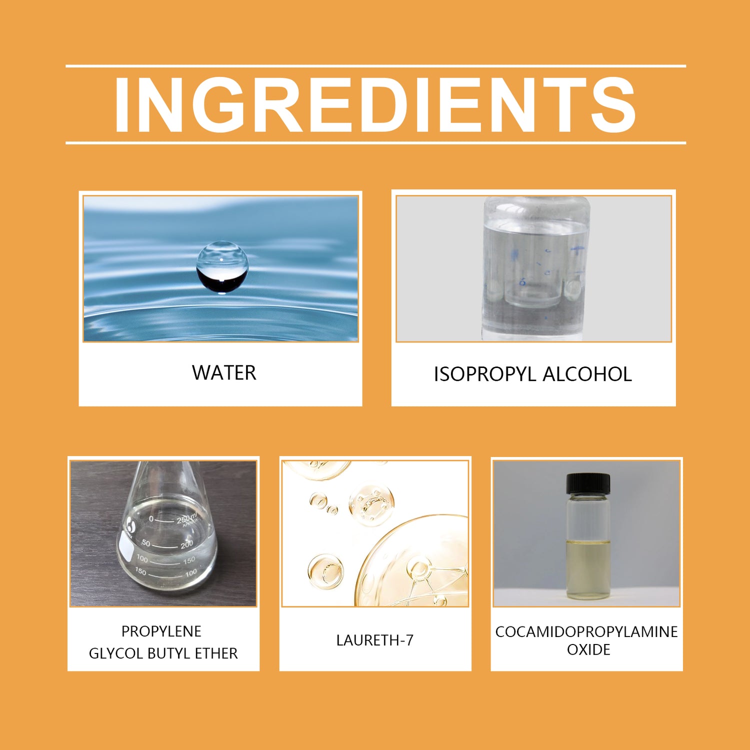 Nuestros limpiadores descontaminantes contienen alcohol isopropílico, propanodiol butil éter y lauril éter 7. Previenen eficazmente la proliferación de bacterias, mantienen la superficie limpia y mejoran la higiene del hogar. Su método de uso es muy sencillo: 1. Limpie el polvo y la suciedad de la superficie. Aplique el limpiador uniformemente sobre la línea o área a limpiar. 2. Frote suavemente la zona cubierta con el limpiador. Su fórmula descontaminante altamente efectiva ofrece una limpieza profunda que elimina las manchas difíciles y deja la superficie impecable.