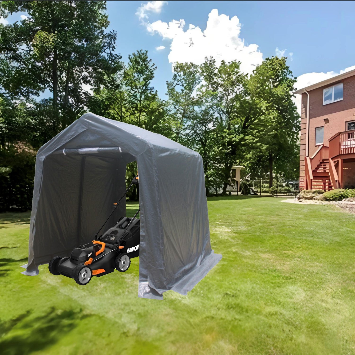 5.Easy Installation: This storage shelter is easy to install and set up, with button connection design for the tubes, no additional tools required. it comes with wind ropes, ground stakes and anchors