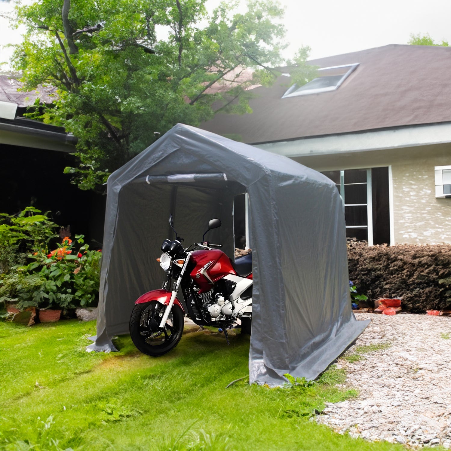 7x12ft heavy duty outdoor storage shelter portable garage for motorcycle, bike, garden tools, ATV, g