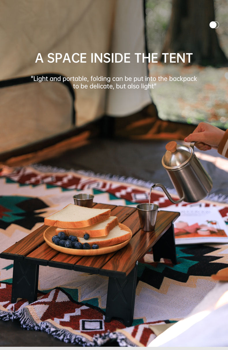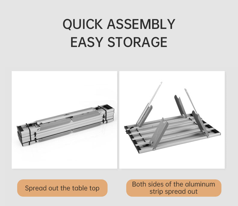 *4.Unlike portable tables with wooden or nylon tops,the aluminum table top is waterproof and easy to wipe