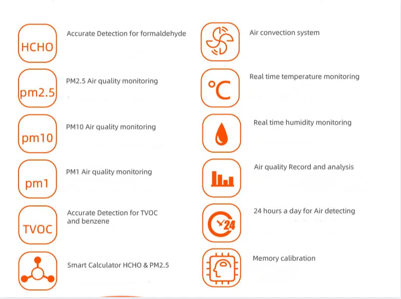 Formaldehyde detection range: 0.000-1.99mg/m ³