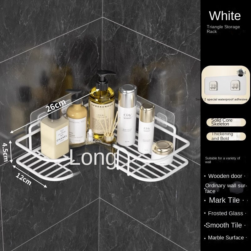 Bathroom Storage Rack Toilet Washroom Wall-Mounted Hole-Free Multi-Functional Iron Mesh Long Strip Organizer - 【Plus Size】Black Triangle - Without Pads is backordered and will ship as soon as it is back in stock.