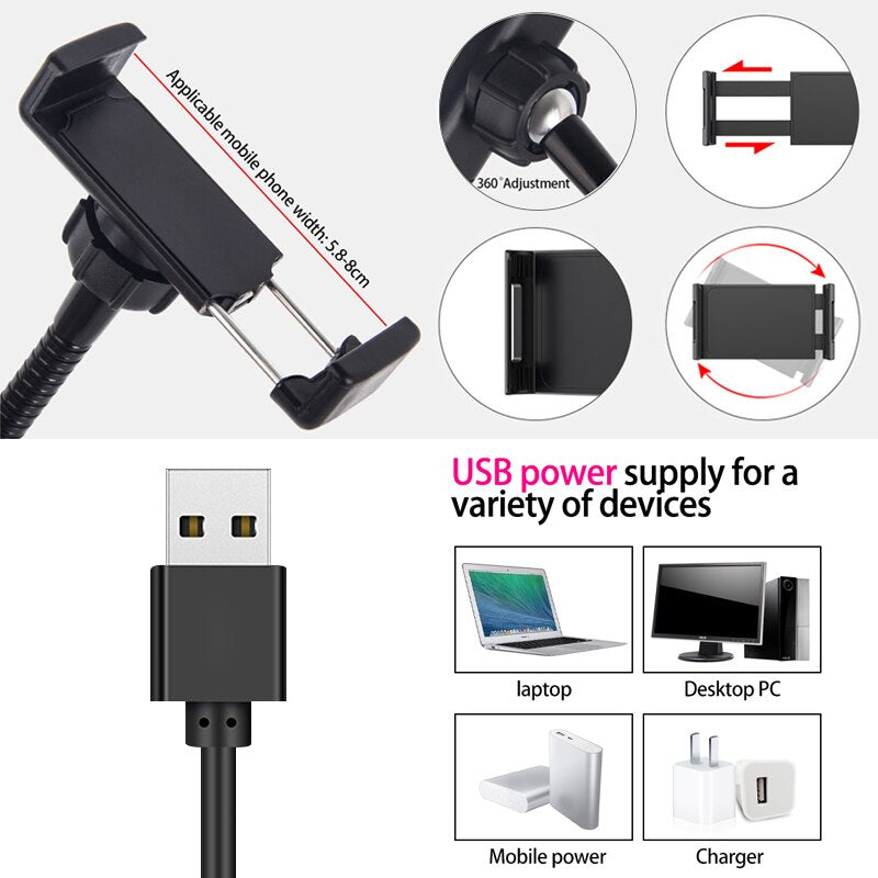 8inch LED Ring Light kit for Makeup Tutorial YouTube Video Live Stream For iPad Microphone Phone Holder Selfie Beauty Ring Light