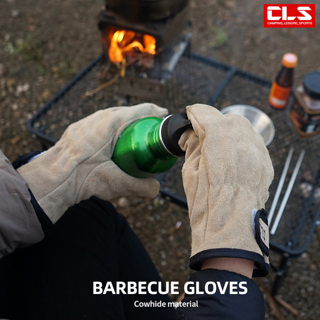 Outdoor Picnic BBQ Gloves Camping Fire Barbecue Leather Anti-Scalding Heat Insulation Thickened Wear-Resistant Protective Gloves