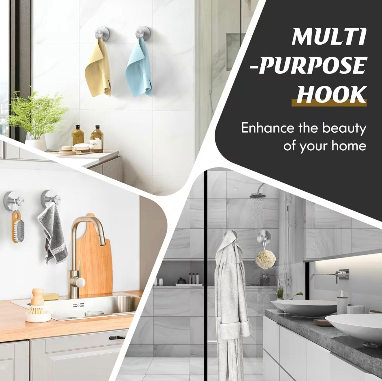 - All-Purpose Hanging Power: Perfect for bathrooms, kitchens, showers, and entryways—hang loofahs, towels, coats, bathrobes, or utensils with ease.