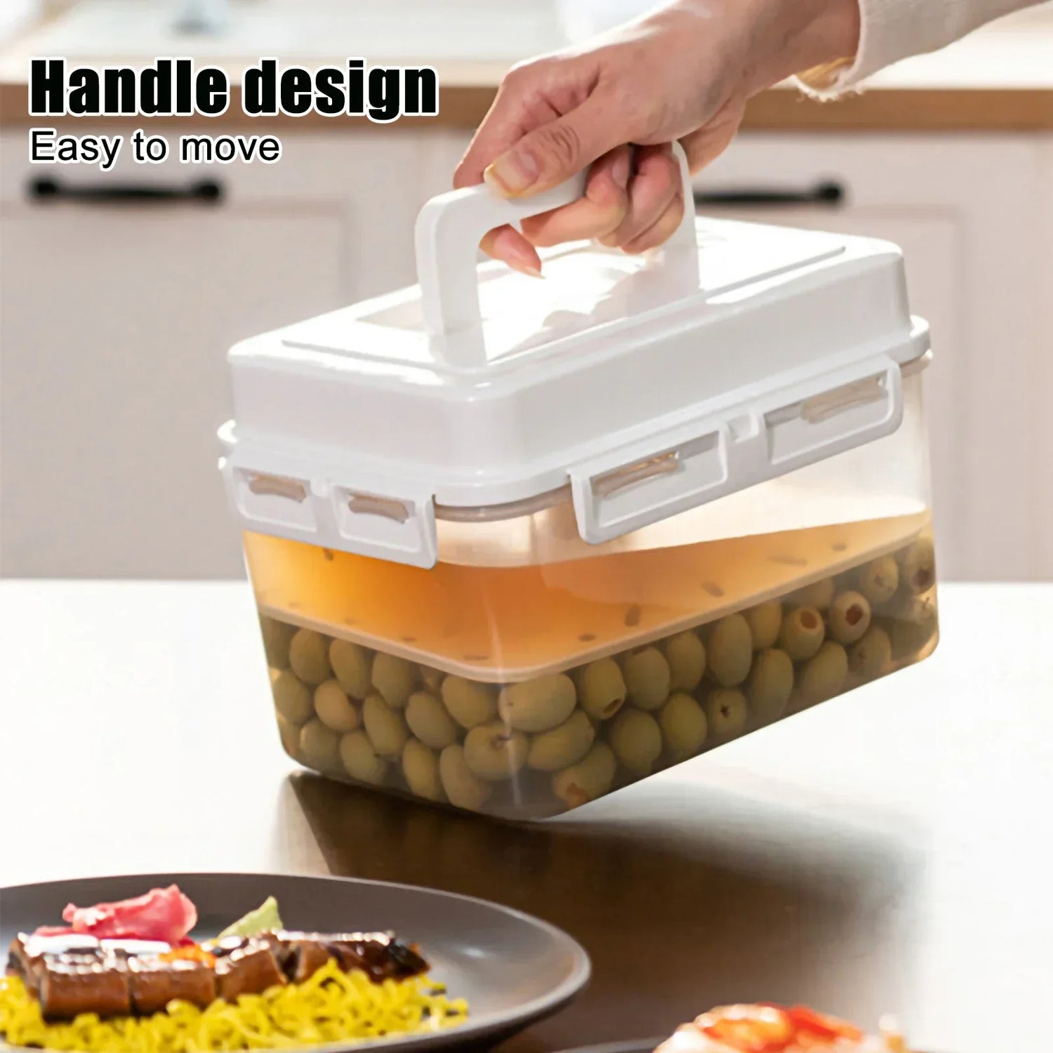 Keep your pickled and fermented foods fresher, longer with the FreshSeal Jar—a smart, leakproof storage solution designed for everything from gherkins and olives to sauerkraut and kimchi. Built with a secure airtight seal and smart separation system, it keeps brine and solids neatly apart while preventing spills and preserving flavor. Whether you're meal prepping at home or bringing your favorites on the go, this jar is the perfect companion for clean, convenient storage.
