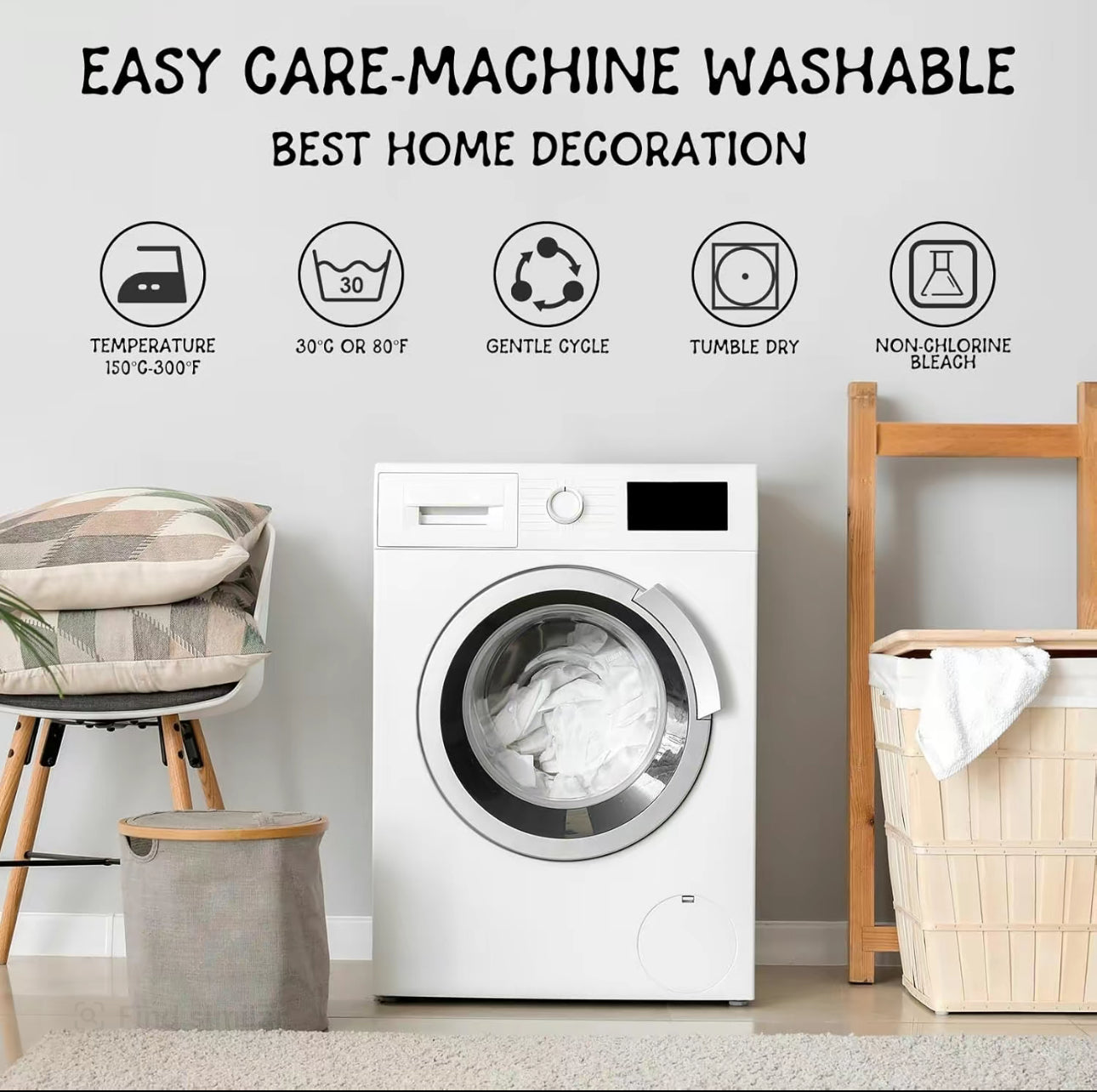 Easy Care: Machine washable on gentle cycle with cold water; tumble dry low; no bleach or direct heat