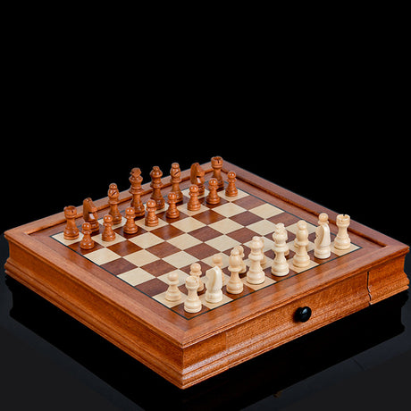 Drawer style solid wood veneer splicing chessboard magnetic chess box set