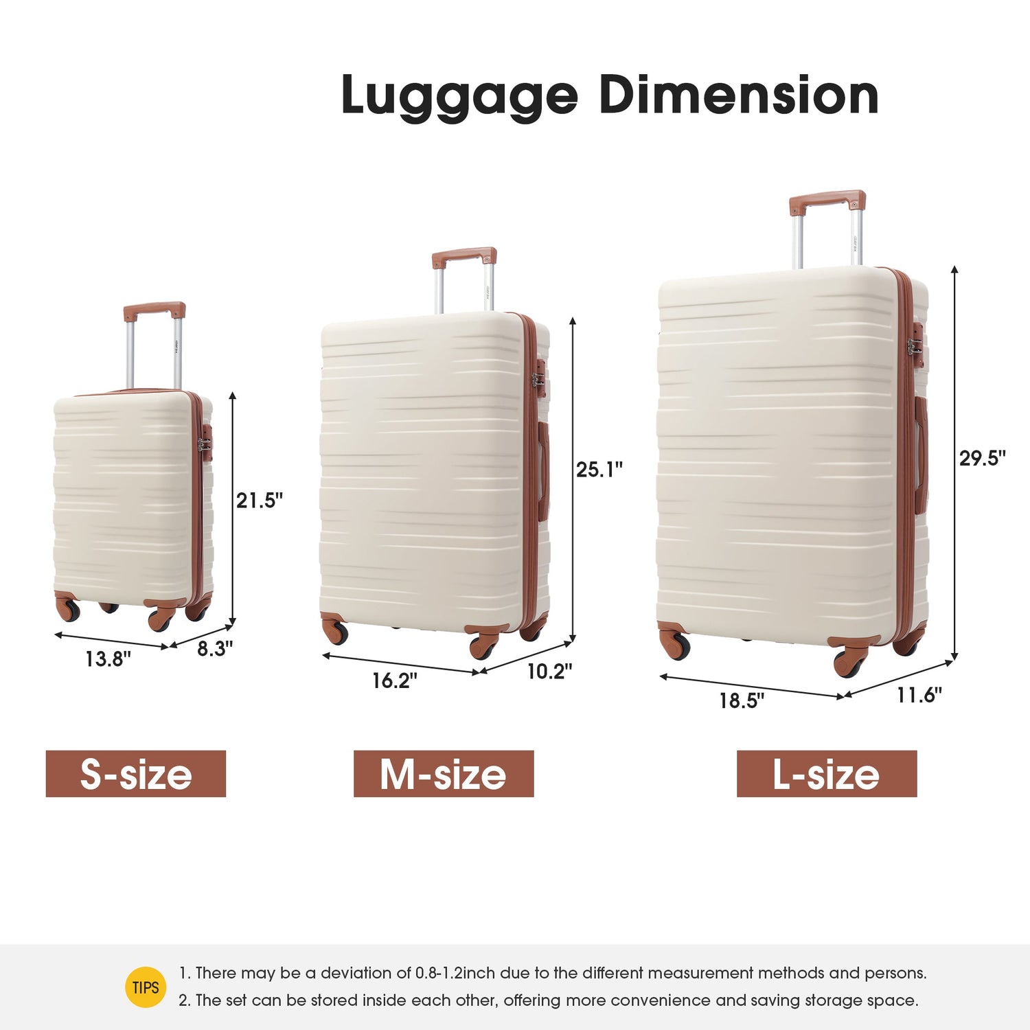 The complete 3 piece suitcase set will be shipped with each suitcase inside one another to save space for your convenience.