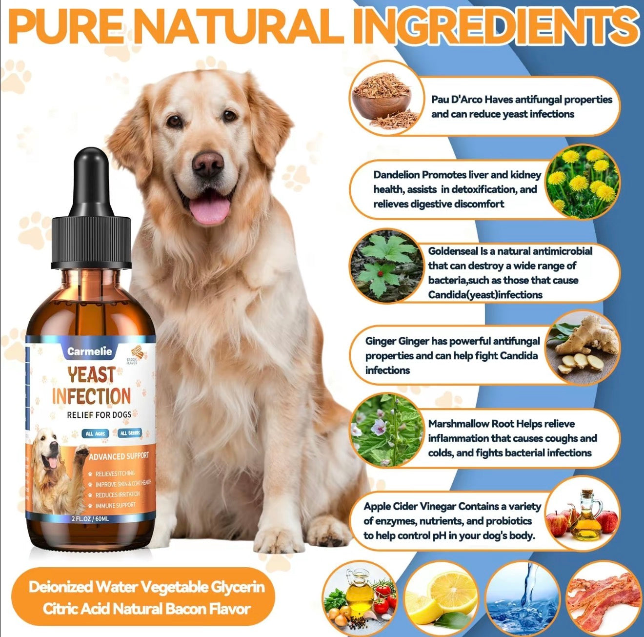 Aids in maintaining balanced ear flora and helps reduce irritation associated with yeast and seasonal allergies. -