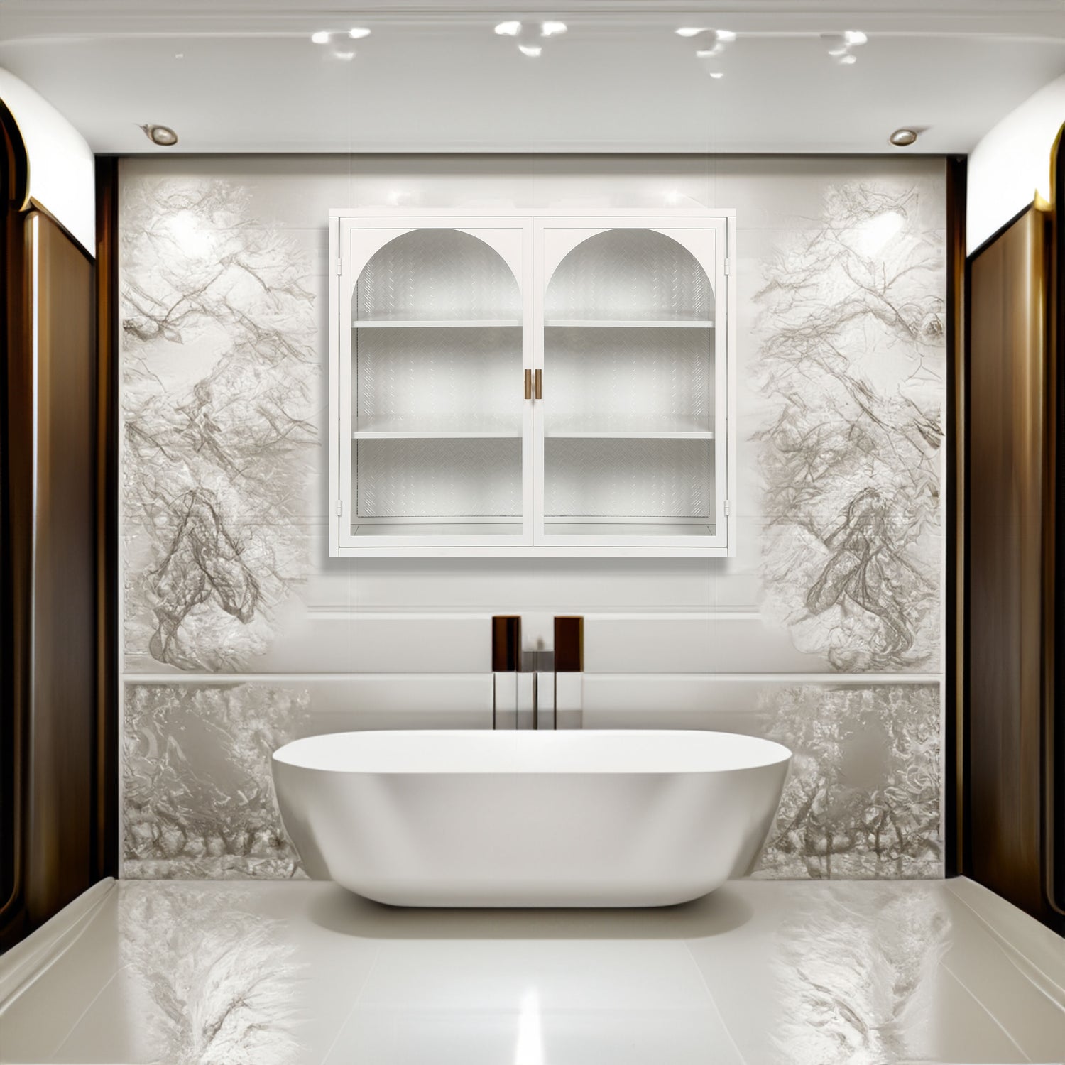 27.56"Glass Doors Modern Two-door Wall Cabinet with Featuring Three-tier Storage White