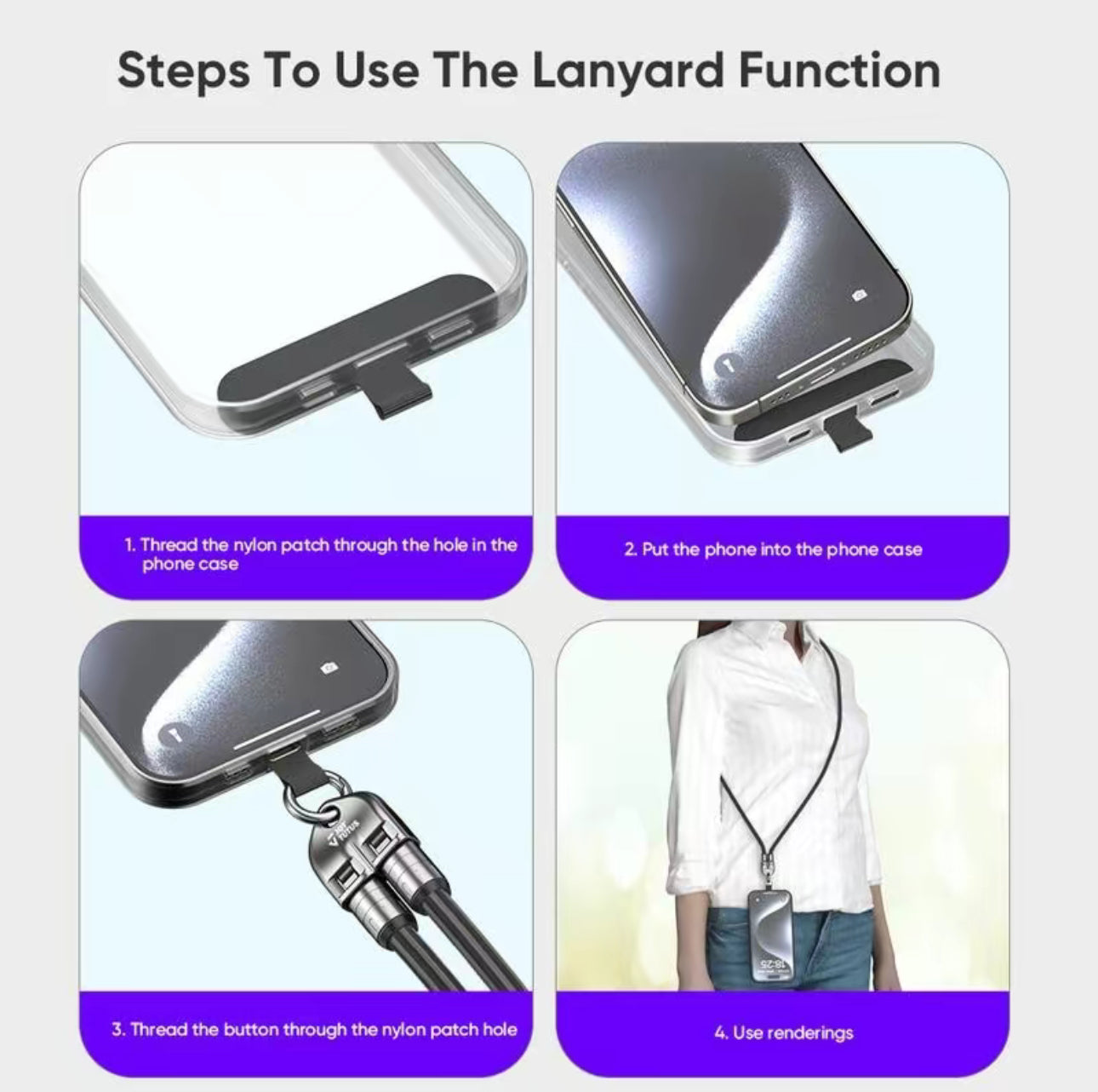 Designed for convenience, the cable can be used as a wrist strap or crossbody lanyard, keeping your phone close without tangling or dragging. -