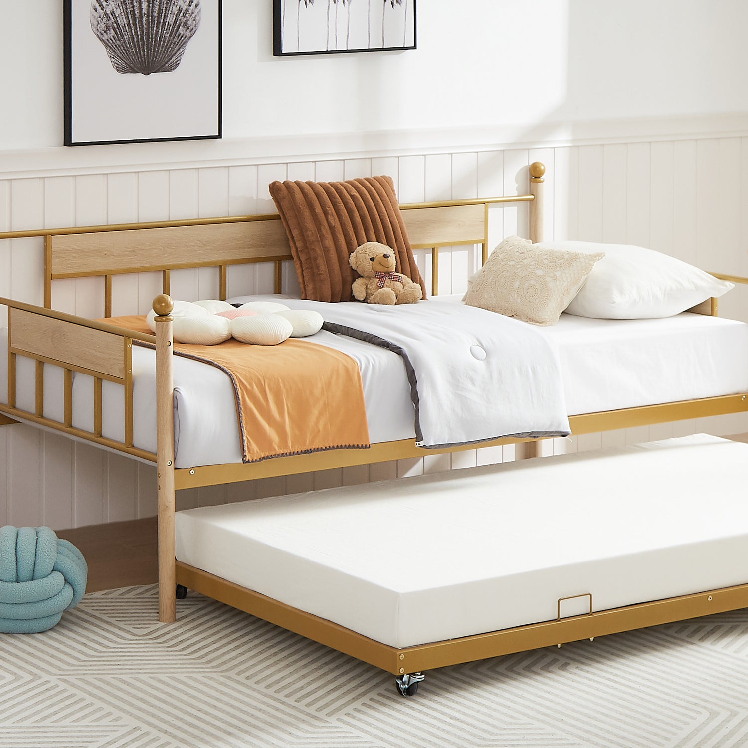 Daybed sofa bed metal framed with trundle twin size golden 77'' L x 40.6'' W x 14.5''H
