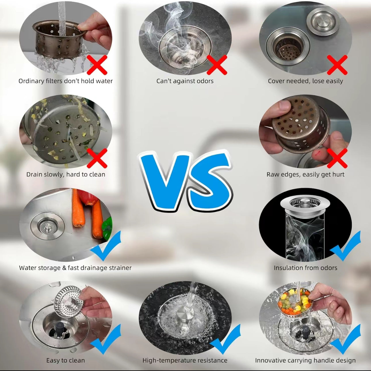Whether you're filtering food debris, holding water, or sealing off odors, this sleek kitchen essential does it all—without rusting, leaking, or clogging.