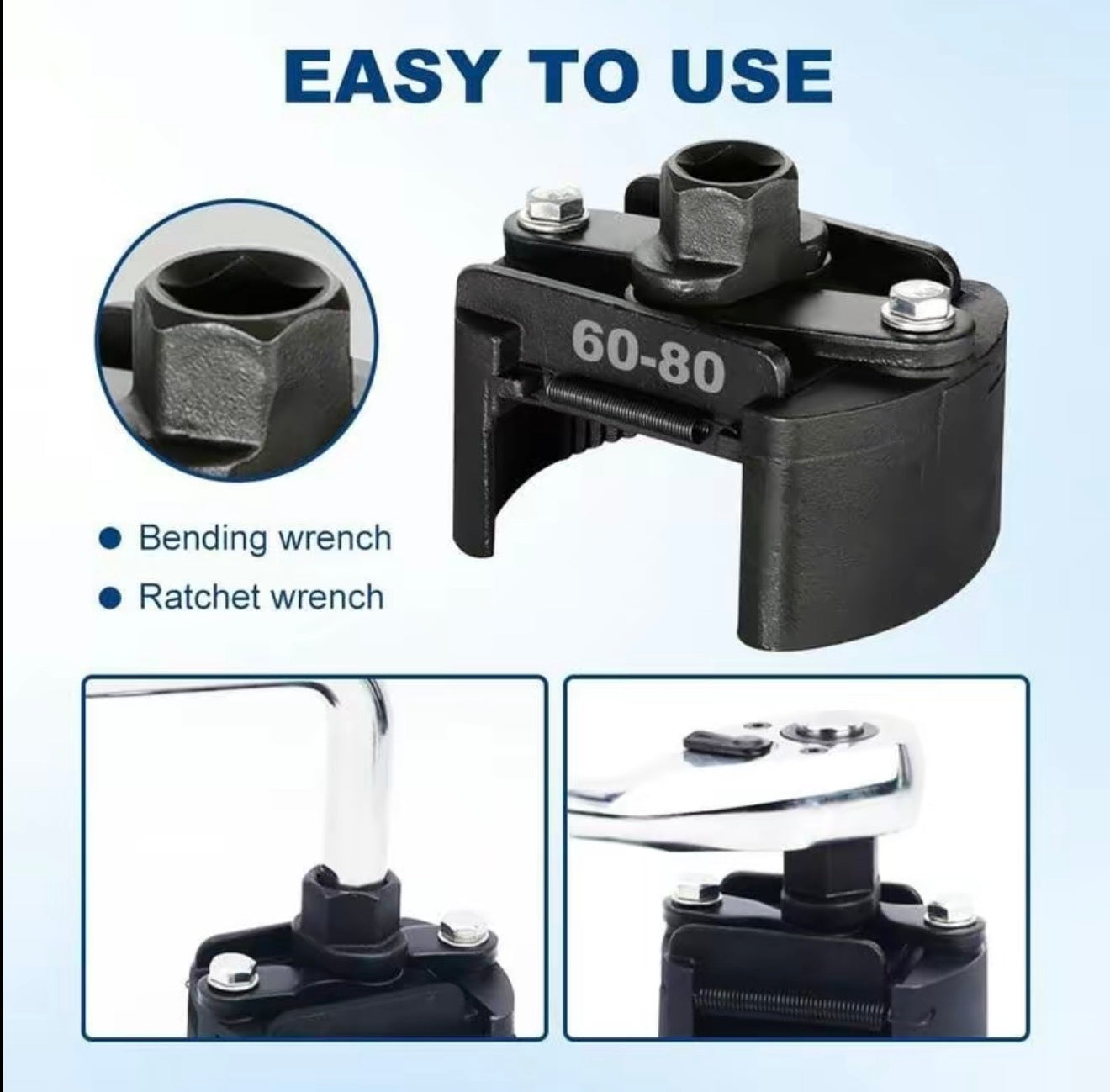 Designed to fit small to medium spin-on oil filters, this tool covers a size range of 60–80 mm (2.36–3.15 inches), making it compatible with many popular vehicle brands including BMW, Audi, Golf, and more.