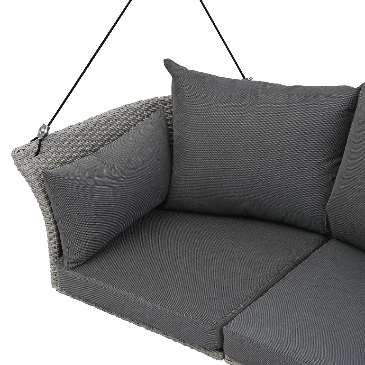GO 51.9" 2-Person Hanging Seat, Rattan Woven Swing Chair, Porch Swing With Ropes, Gray Wicker And Cushion