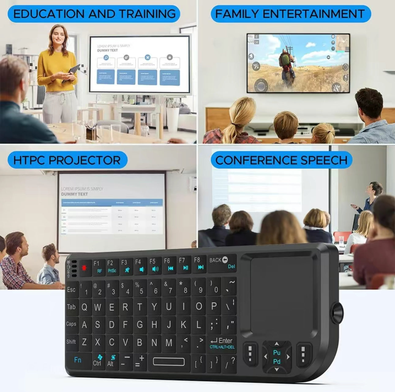 Compact but powerful, the KeyGlow Mini Keyboard puts full control in the palm of your hand. With integrated touchpad, backlit keys, and rechargeable 2.4G wireless connectivity, it’s ideal for controlling PCs, Macs, Smart TVs, living rooms, presentations, and more—without messy wires or bulky setups.