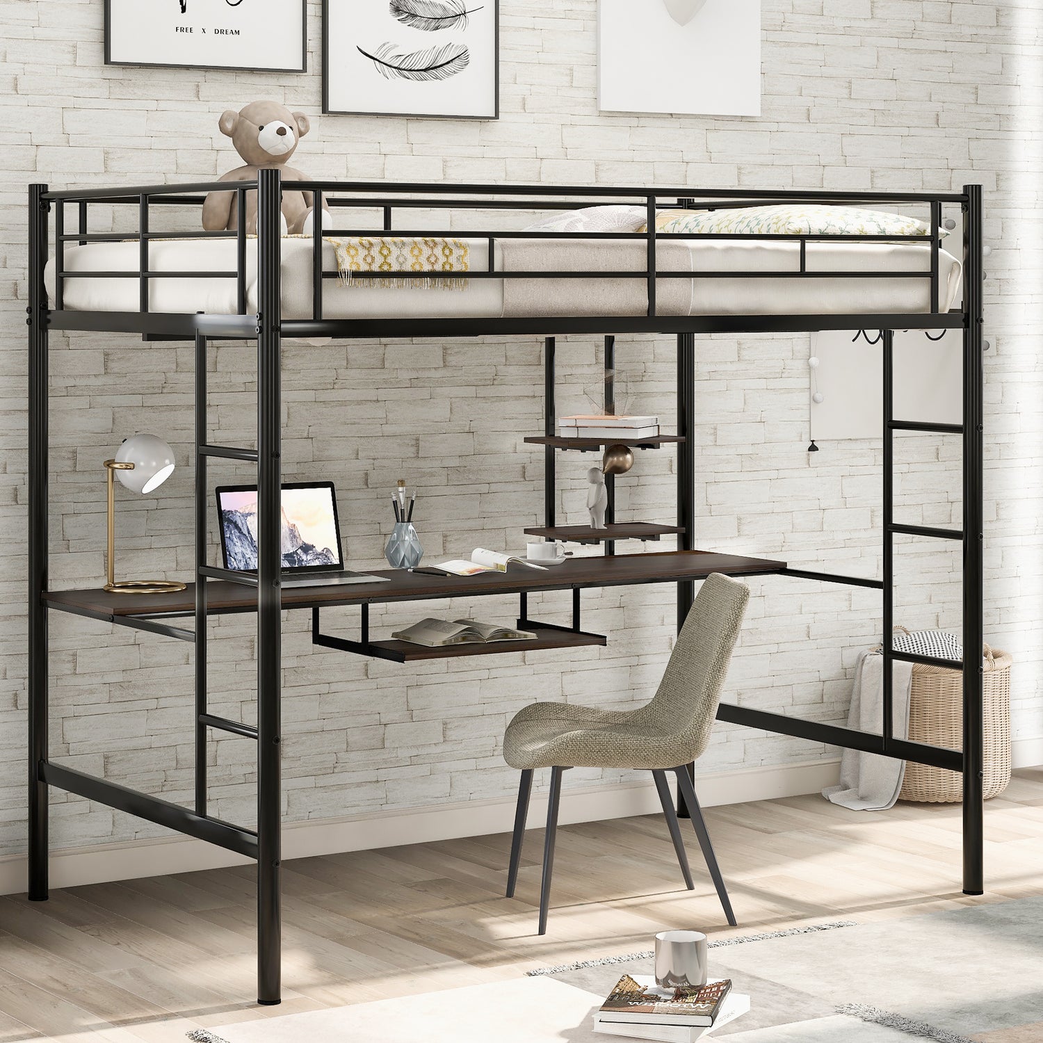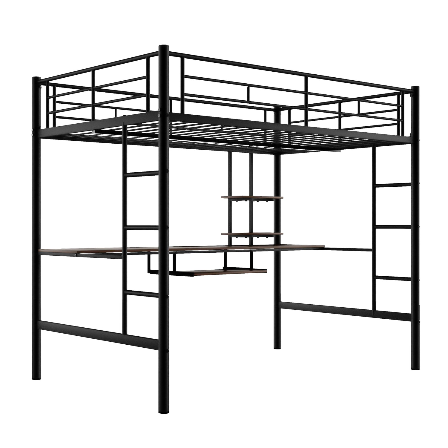 Loft Bed with Desk and Shelf , Space Saving Design, Full, Black