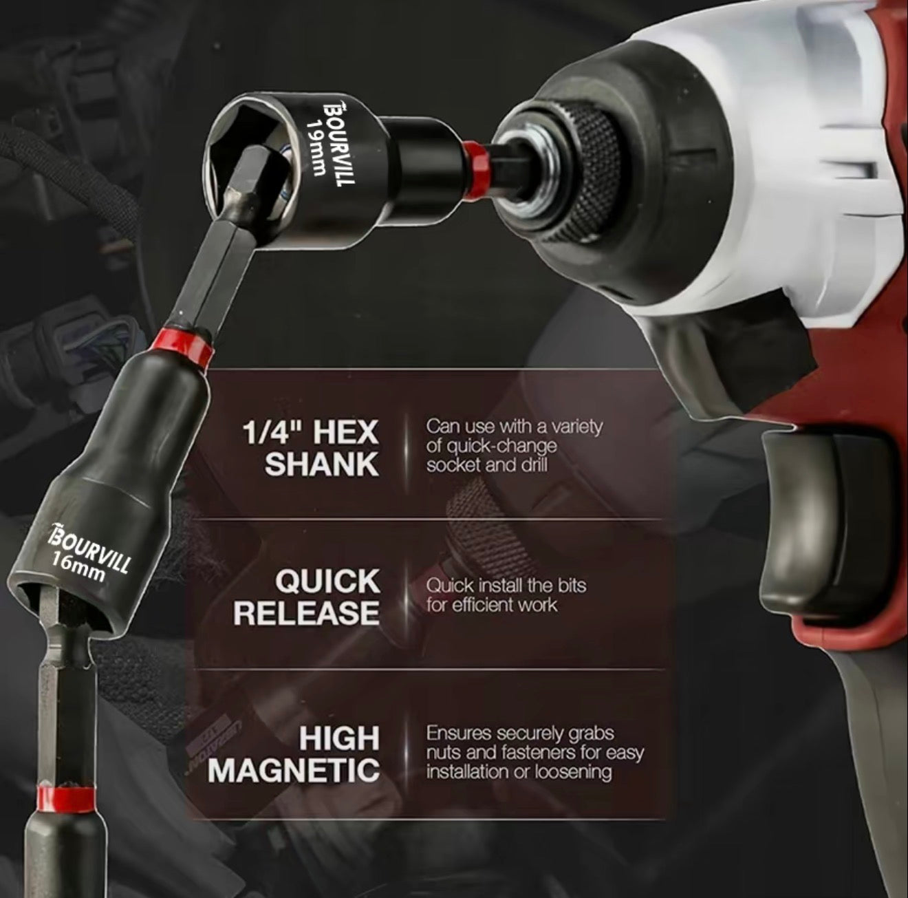 Fully compatible with impact drills, socket wrenches, and electric drills with keyless chucks. The quick-connect system ensures smooth installation and removal for maximum efficiency.