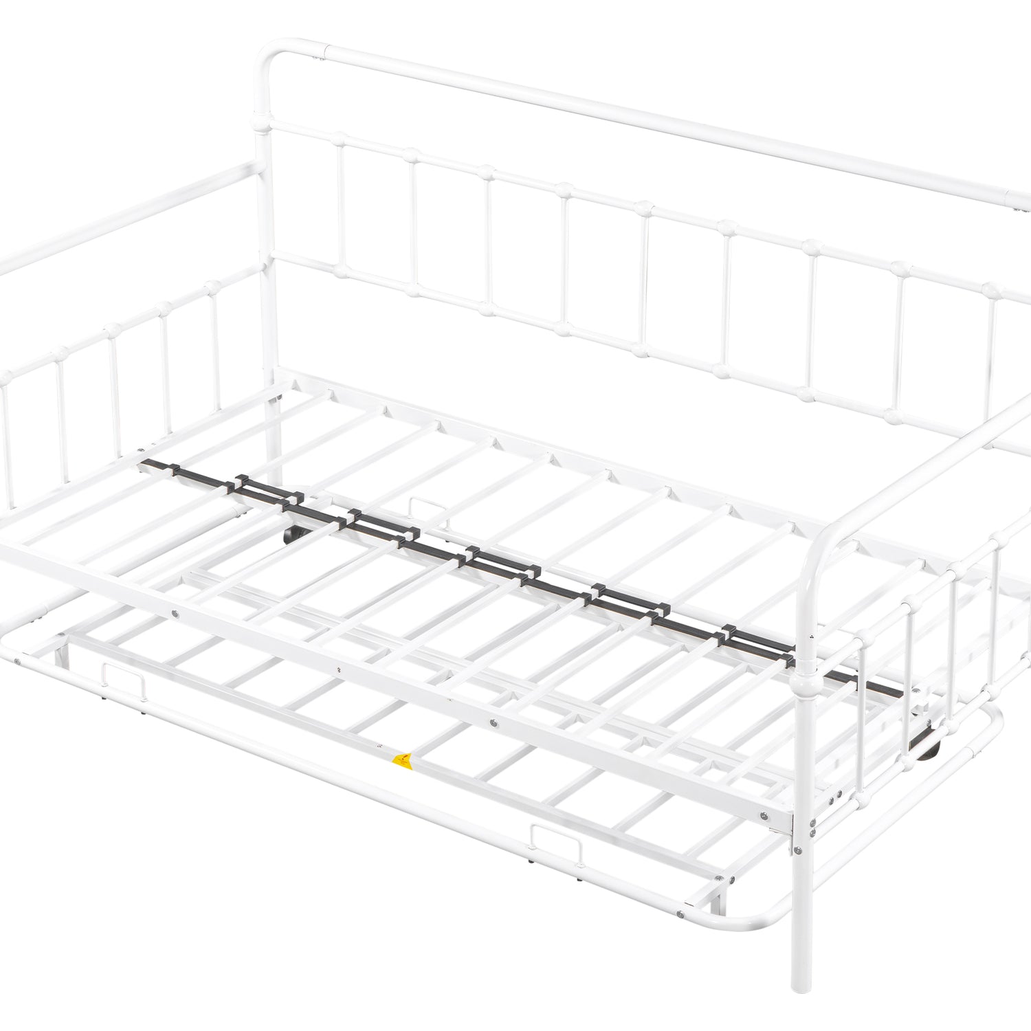 Solid Construction: Crafted from strong and sturdy metal, our daybed is built to last. Its solid construction provides the durability and stability you need for a comfortable night's sleep. The metal slats not only support your mattresses securely but also allow air to circulate freely beneath your bed, ensuring your mattress stays fresh and extends its lifespan.