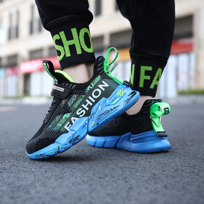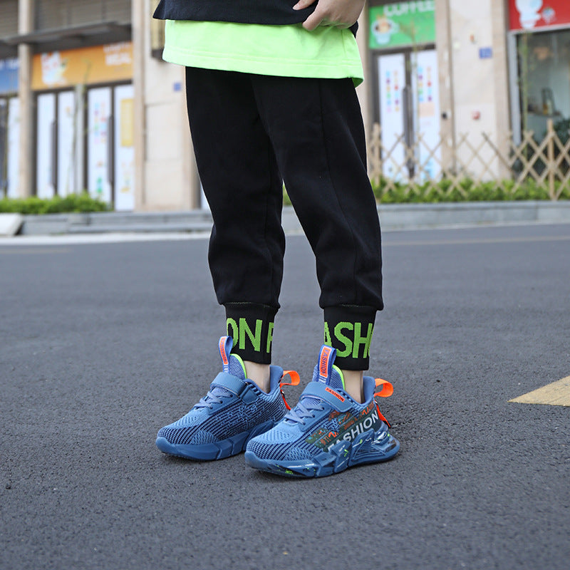 Zapatos casuales de primavera y verano para niños, zapatillas de suela gruesa con parte superior tejida, zapatos de malla a la moda para niñas