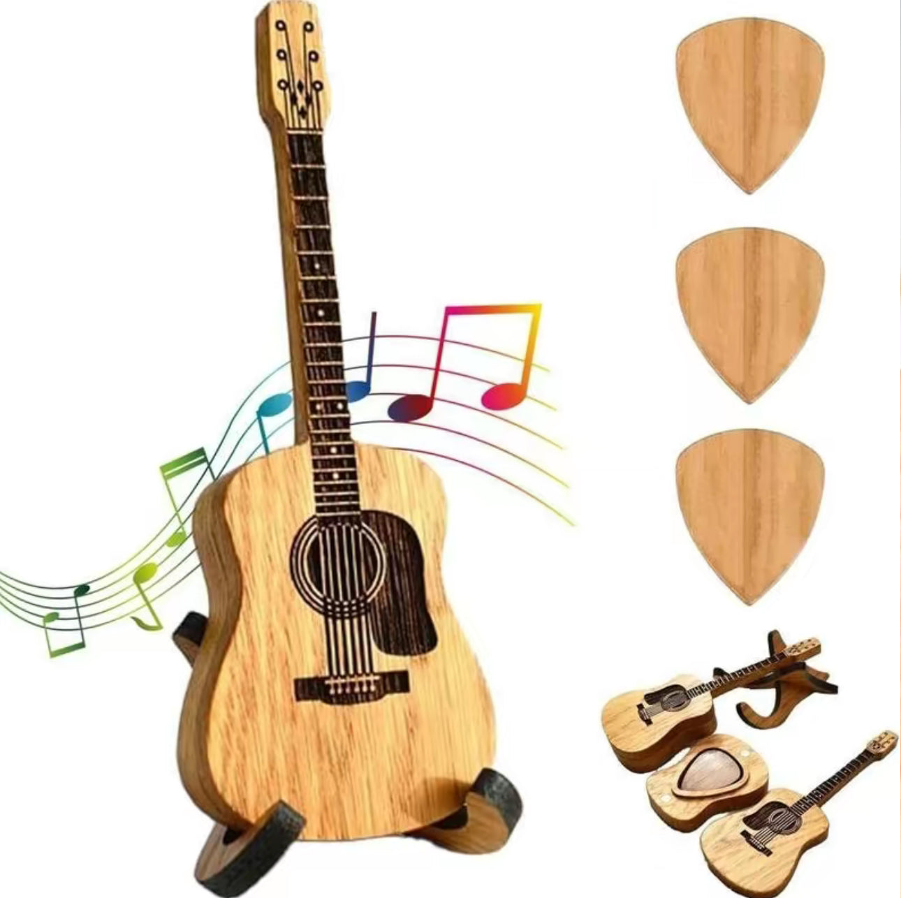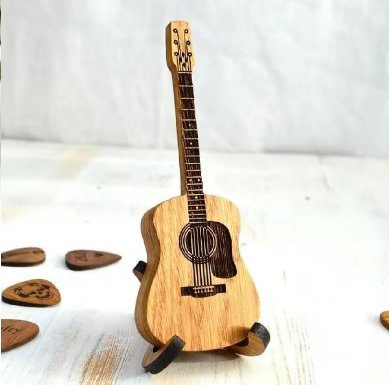 Celebrate your love for music with the StrumKeep Wooden Box—a beautifully handcrafted mini guitar-shaped pick holder that blends art, function, and inspiration.