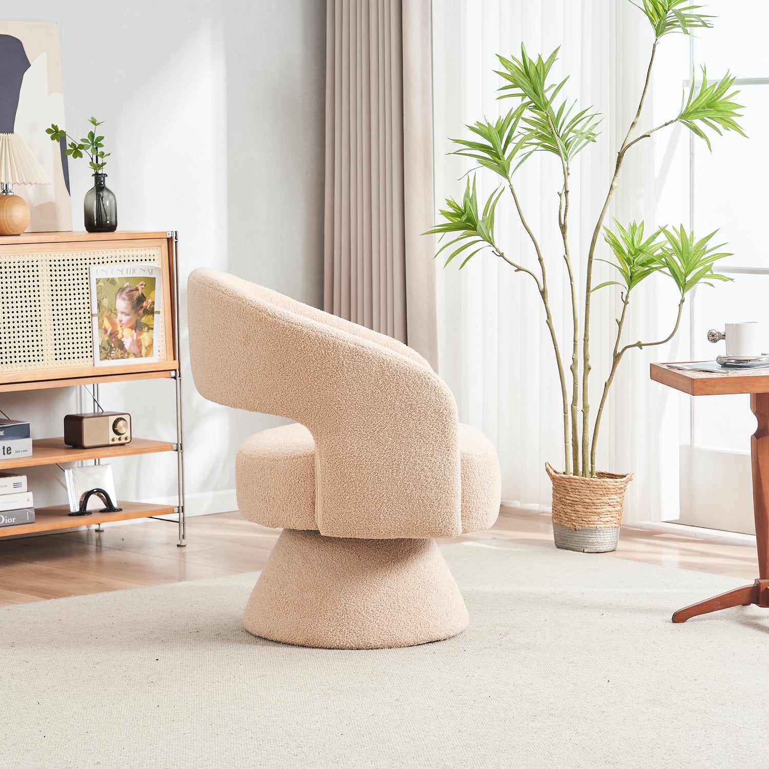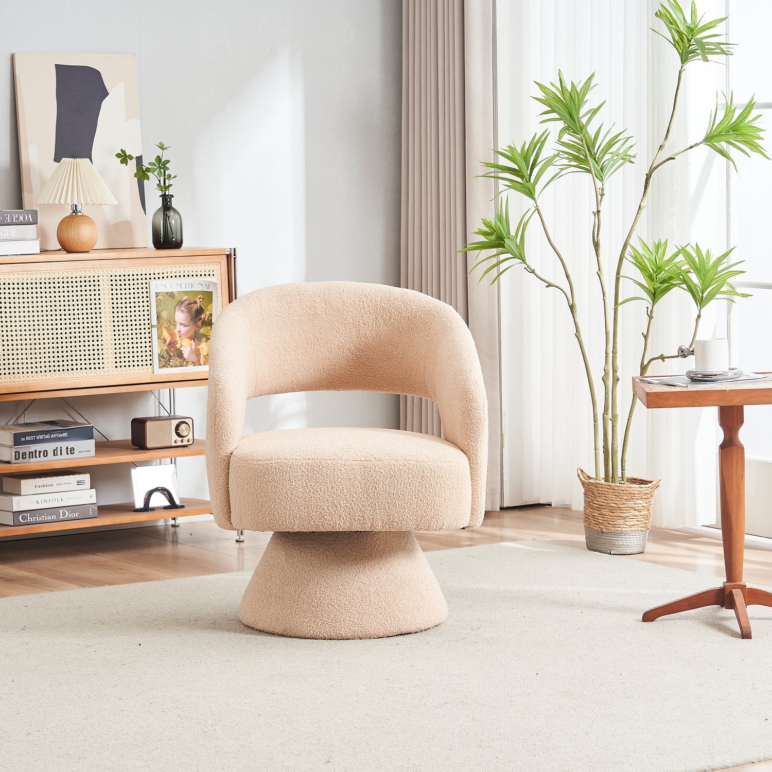Swivel Accent Chair Armchair Round Barrel Chair in Fabric for Living Room Bedroom Nude Teddy - Cream + faux fur está agotado y se enviará tan pronto como vuelva a estar disponible.