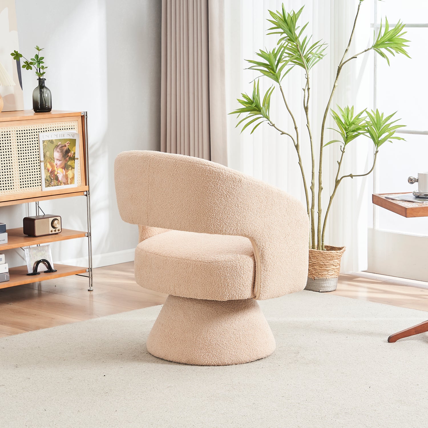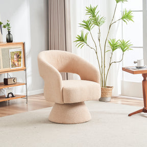 Swivel Accent Chair Armchair Round Barrel Chair in Fabric for Living Room Bedroom Nude Teddy