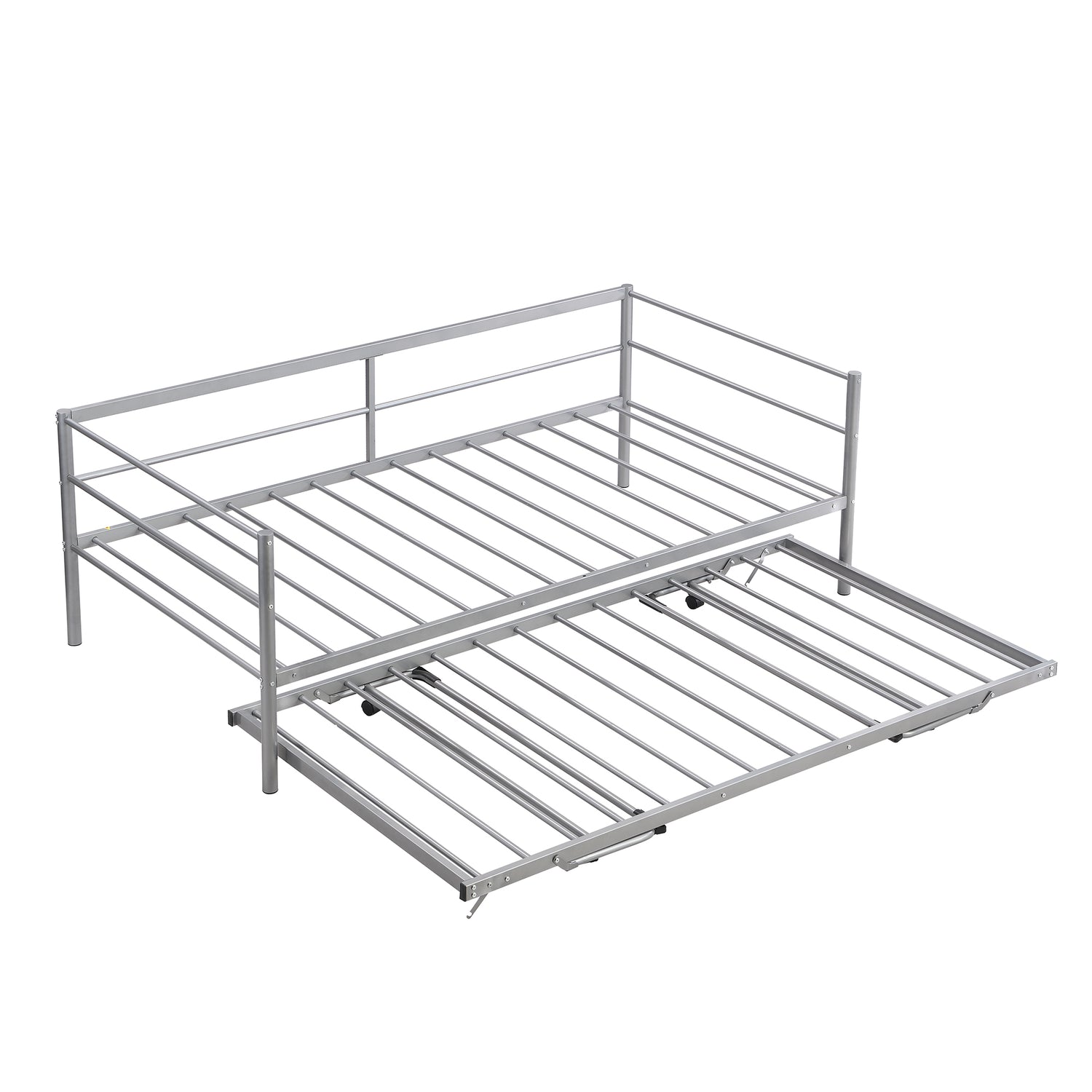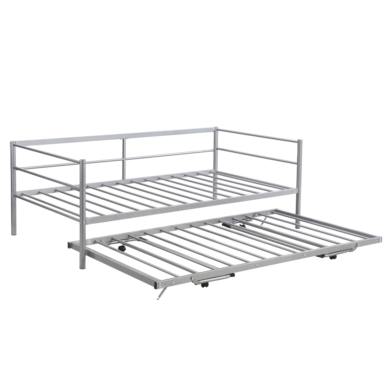 Twin Size Metal Daybed with Adjustable Trundle Pop Up Trundle Silver