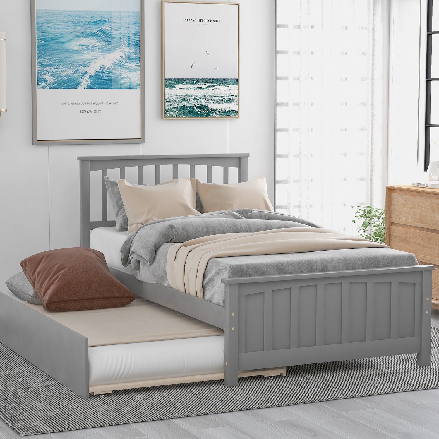 Twin size Platform Bed with Trundle Gray - Gray + Solid Wood está agotado y se enviará tan pronto como vuelva a estar disponible.