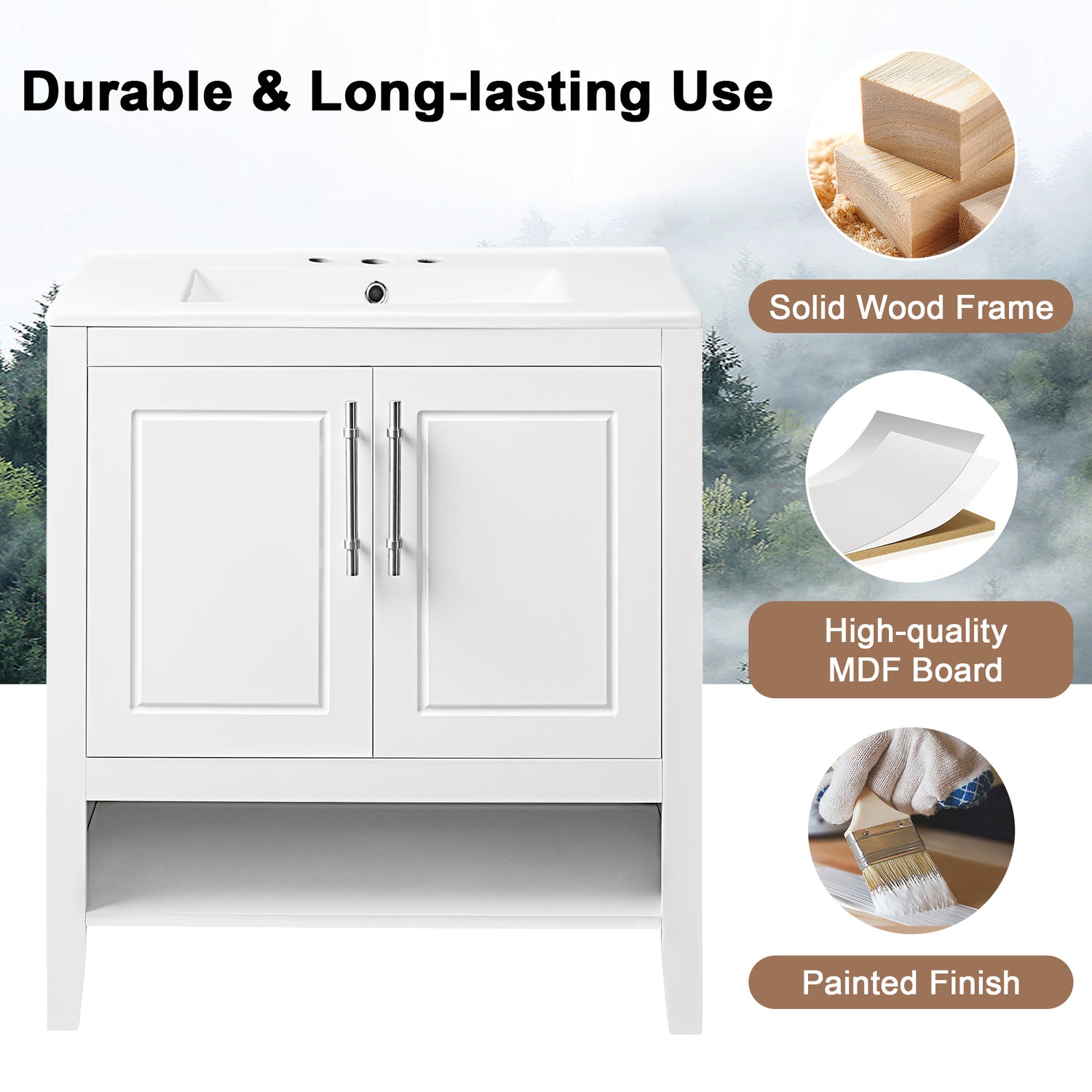 2. Solid Wood& High-quality MDF Board & Ceramic Sink & Painted Finish