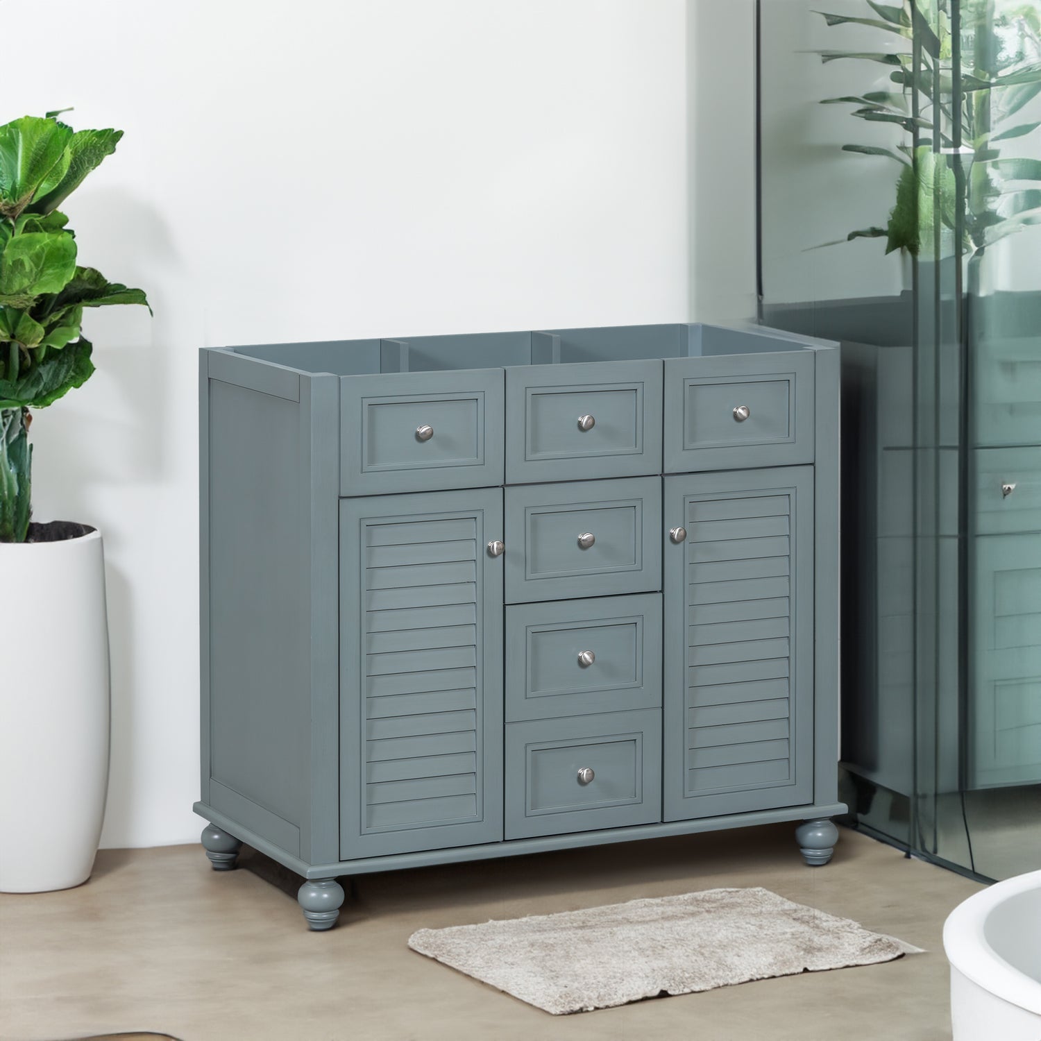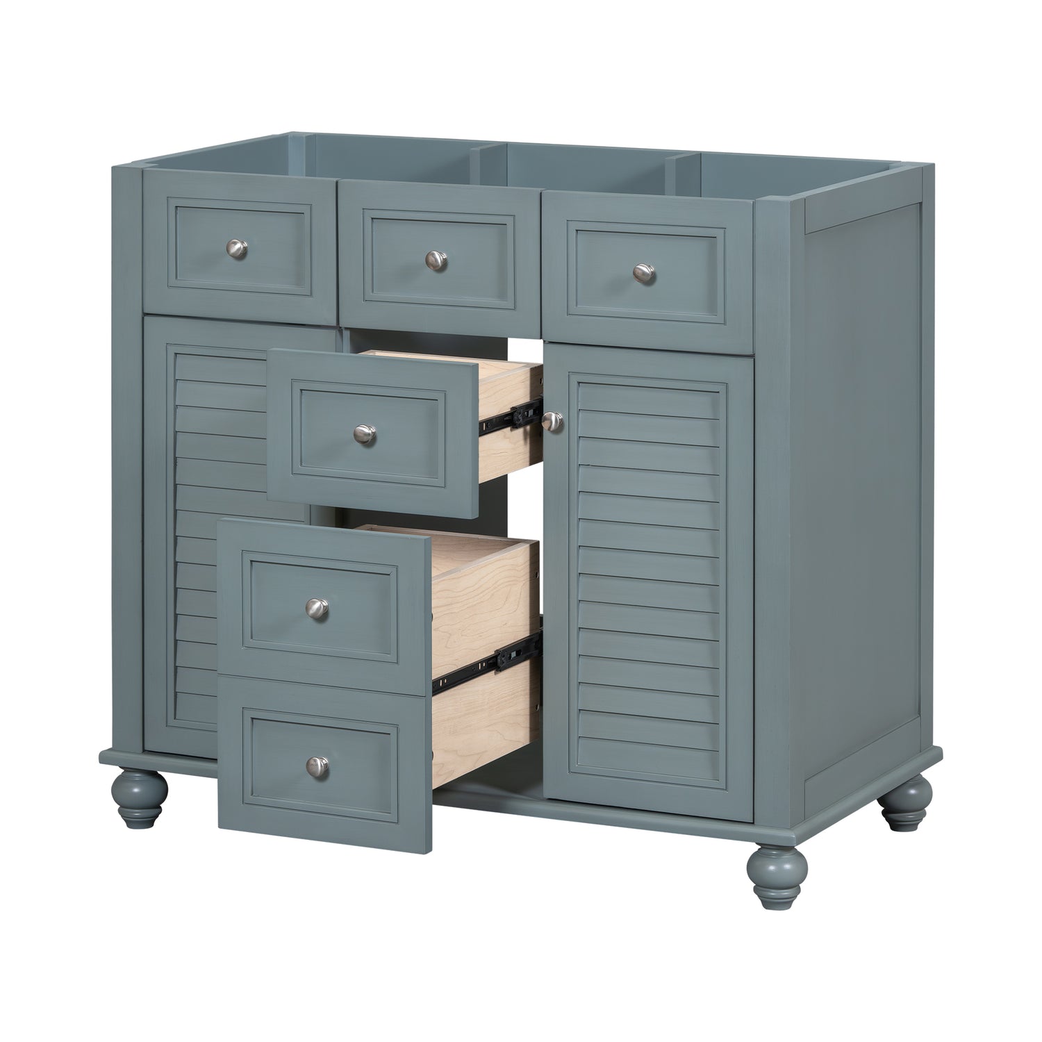36 "No sink, with 2 drawers and soft closing door, independent makeup rack, bathroom cabinet, blue (excluding sink)