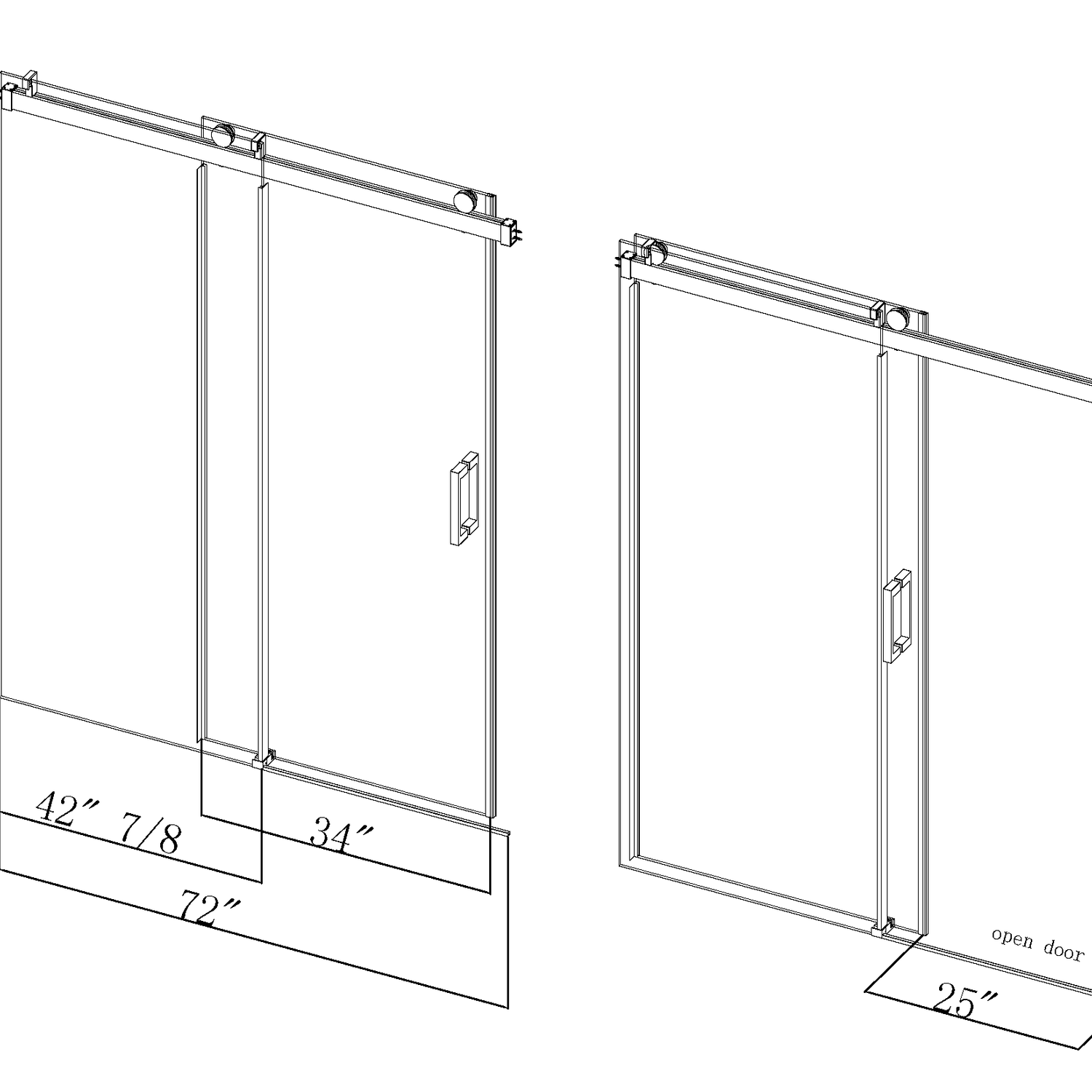 68 to 72 inches wide x 76 inches high frameless soft closing shower door 3/8 inches (10mm) thick brushed nickel solid glass 22D0 - W1573104182 is backordered and will ship as soon as it is back in stock.