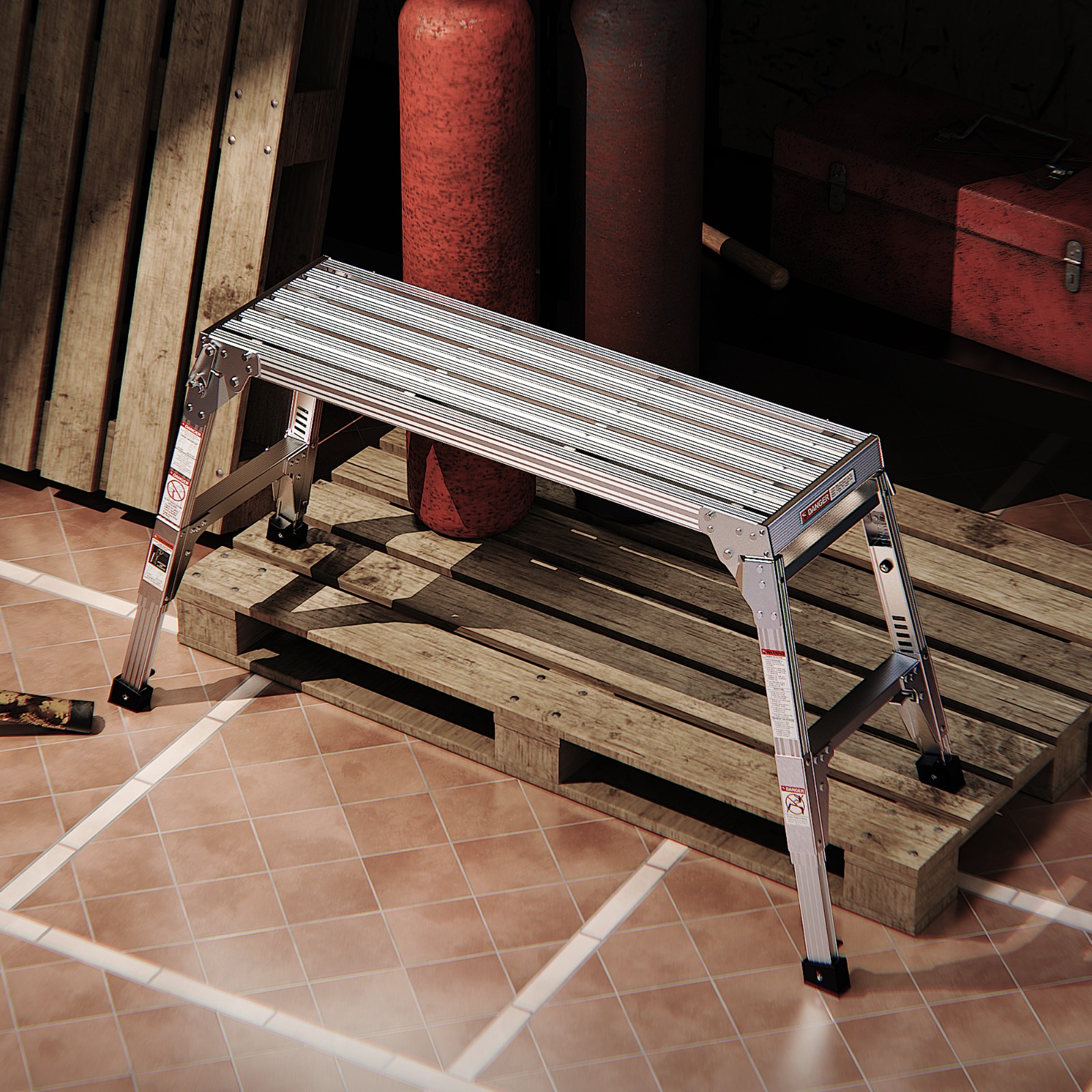 Aluminum Work Platform Large Size Step Stool Folding Portable Work Bench 40" Width Telescopic Feet 22" -27.5" Height Adjustable - Grey is backordered and will ship as soon as it is back in stock.