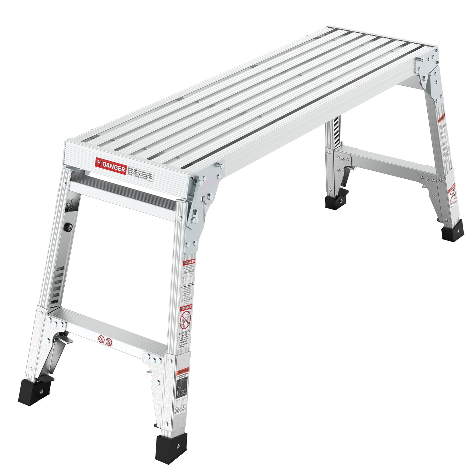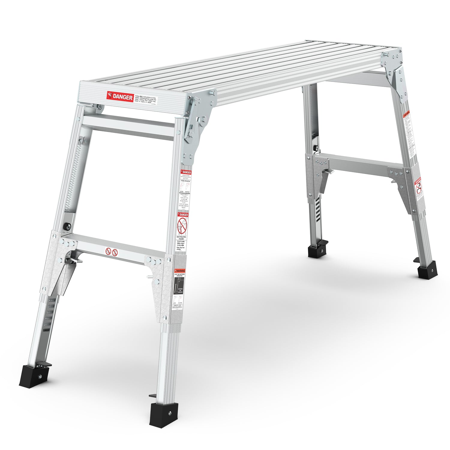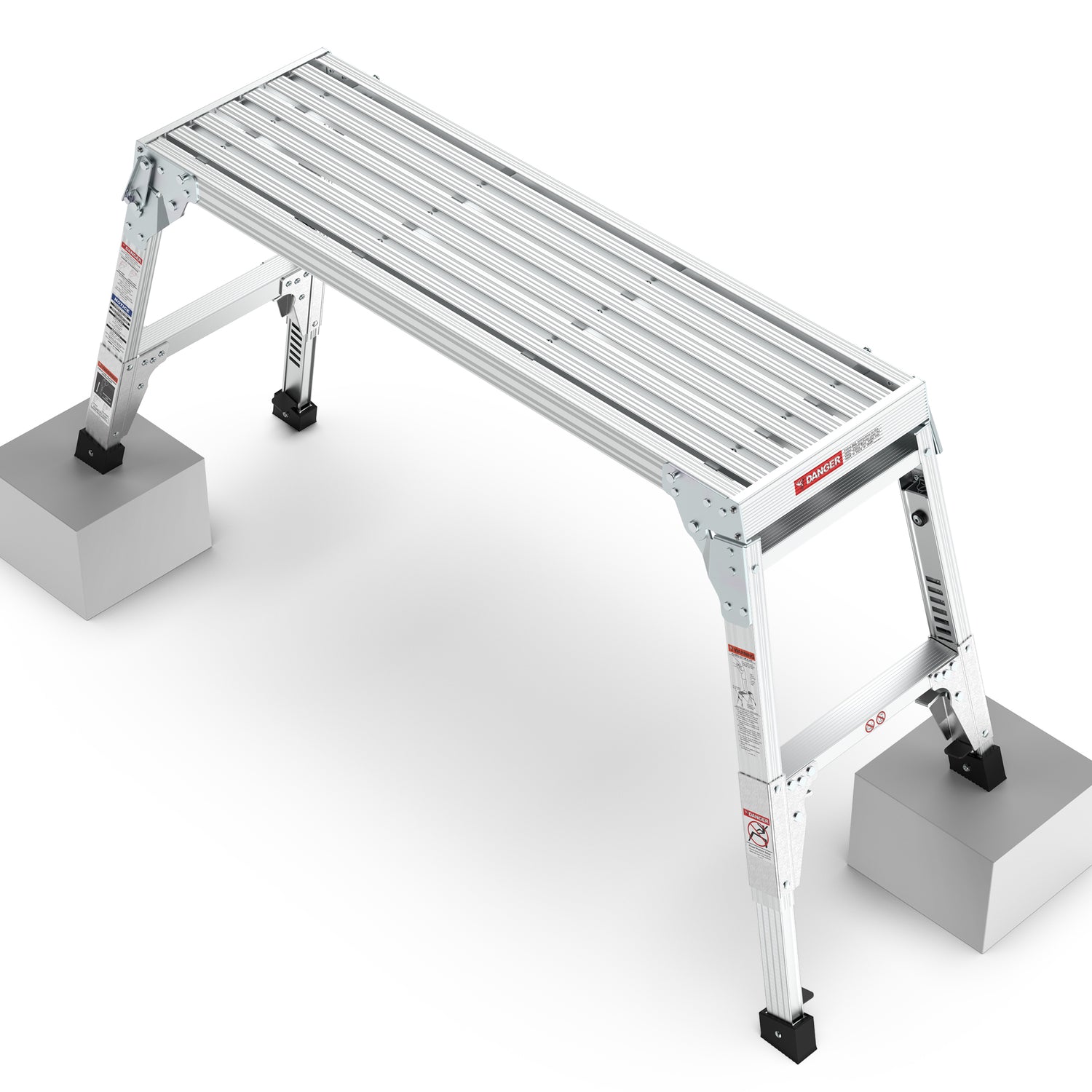 Aluminum Work Platform Large Size Step Stool Folding Portable Work Bench 40" Width Telescopic Feet 22" -27.5" Height Adjustable