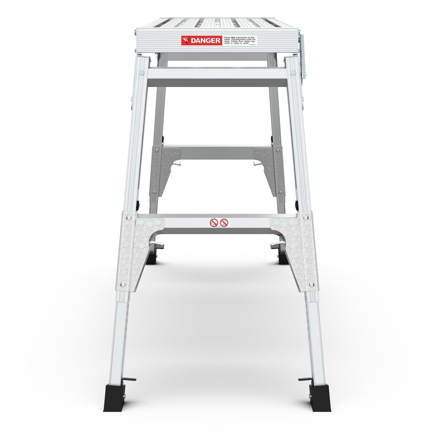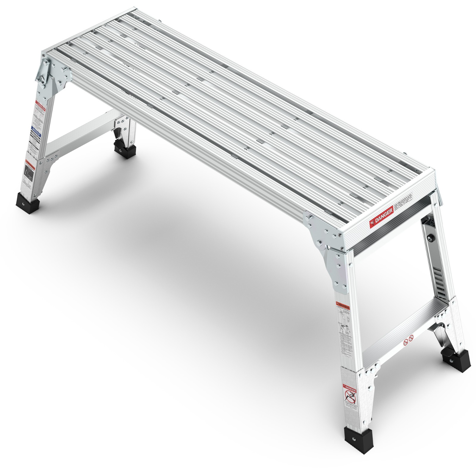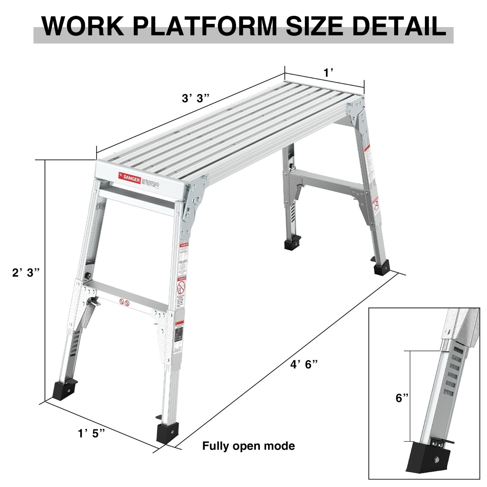 Aluminum Work Platform Large Size Step Stool Folding Portable Work Bench 40" Width Telescopic Feet 22" -27.5" Height Adjustable