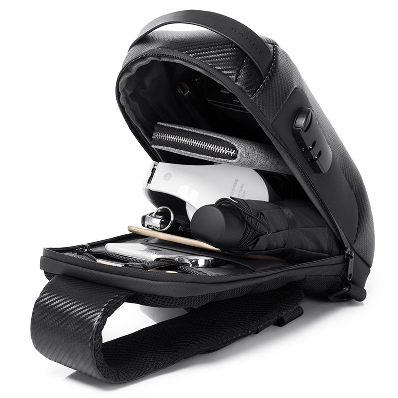 Bange Men's New Chest Bag Messenger Waterproof Shoulder Bag USB Business Trend Shoulder Bag Chest Bag - Gray (Carbon Fiber) is backordered and will ship as soon as it is back in stock.