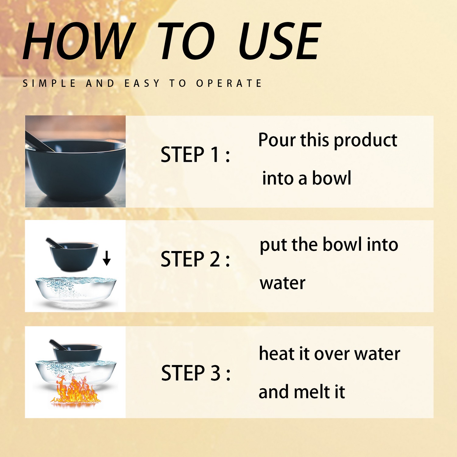 Our beeswax granules contain beeswax. It can maintain all kinds of furniture and make it brighter. Its use is simple: Pour this product into a bowl, place the bowl in water, heat it over water, and melt it. And can enhance the maintenance of furniture.