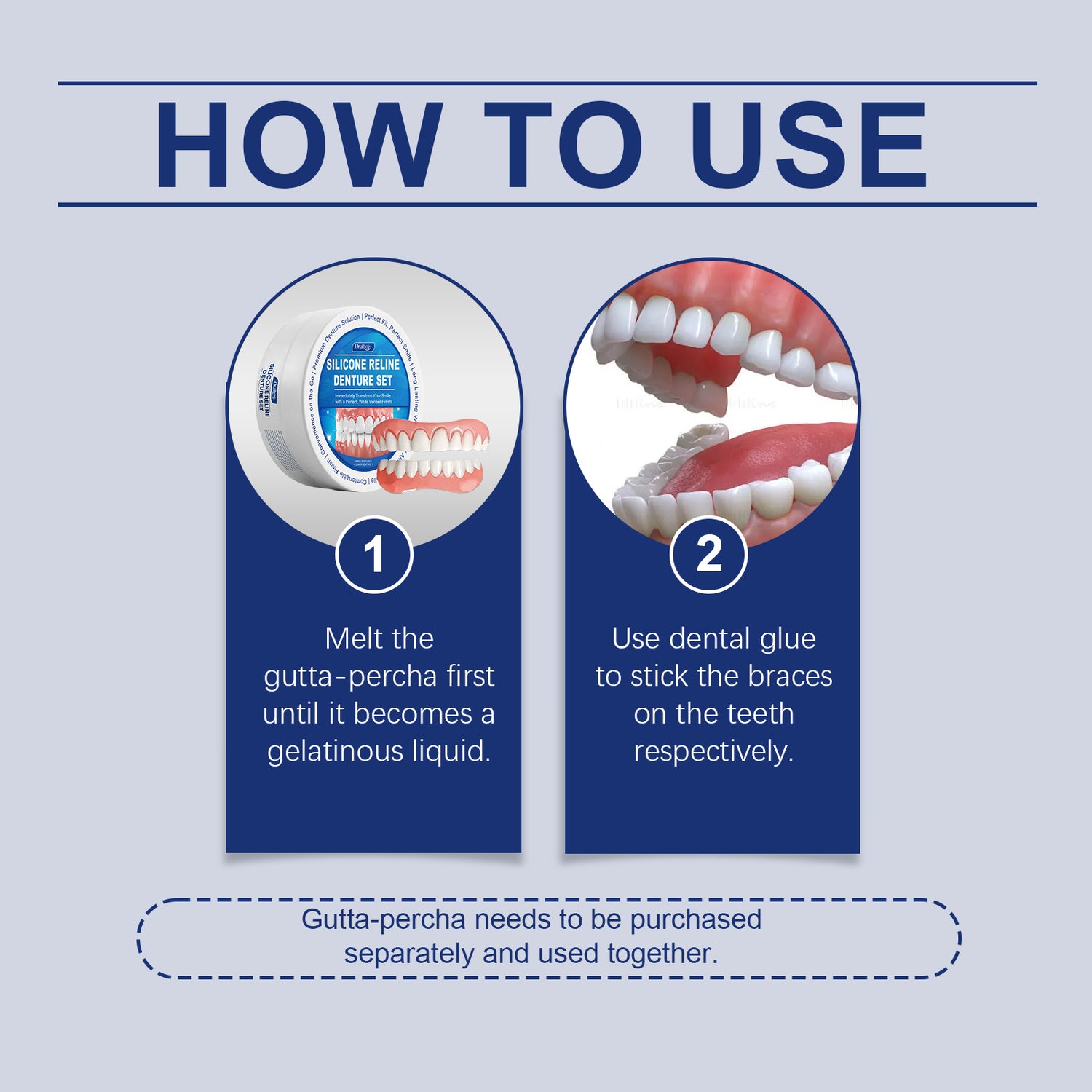 Our dentures contain polyvinyl alcohol crosslinked polymers, sodium polyacrylate. It can instantly enhance your appearance. It works simply by melting the gum until it becomes a gel-like liquid. Attach the braces to the teeth separately with dental glue. And it can quickly improve the beauty of your smile.