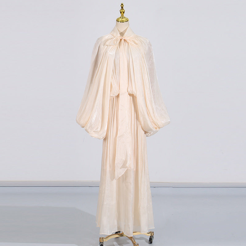 Fashionable niche design bat sleeve lace up pleated dress for women - apricot / L is backordered and will ship as soon as it is back in stock.