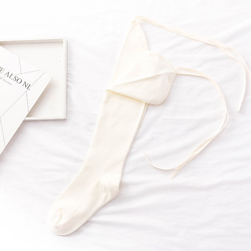 Lolita Cross-tie Over-knee Socks Sexy Long Tube Jk Uniform Calf Socks Female Japanese Middle and High Tube Stockings Cute Woman - White / One Size is backordered and will ship as soon as it is back in stock.