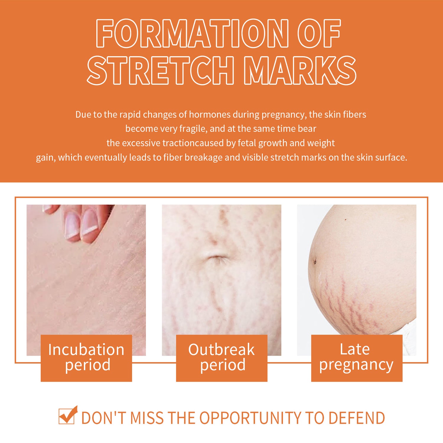 Our pregnancy massage oil contains almond oil, coconut oil, cocoa butter. It can lighten the skin tone, deeply nourish and moisturize, help you repair postpartum stretch marks, enhance skin elasticity, inhibit the growth of stretch marks, and gradually restore the skin's original firmness and softness. Its use method is very simple: first take a few drops on the palm, evenly apply on the abdomen, thighs, buttocks and other parts, massage in circles for about 30 seconds until absorbed. After use, it enhances the elasticity of the skin, deeply nourishes and moisturizes the skin, is gentle and non-irritating, and helps to inhibit the growth of stretch marks.