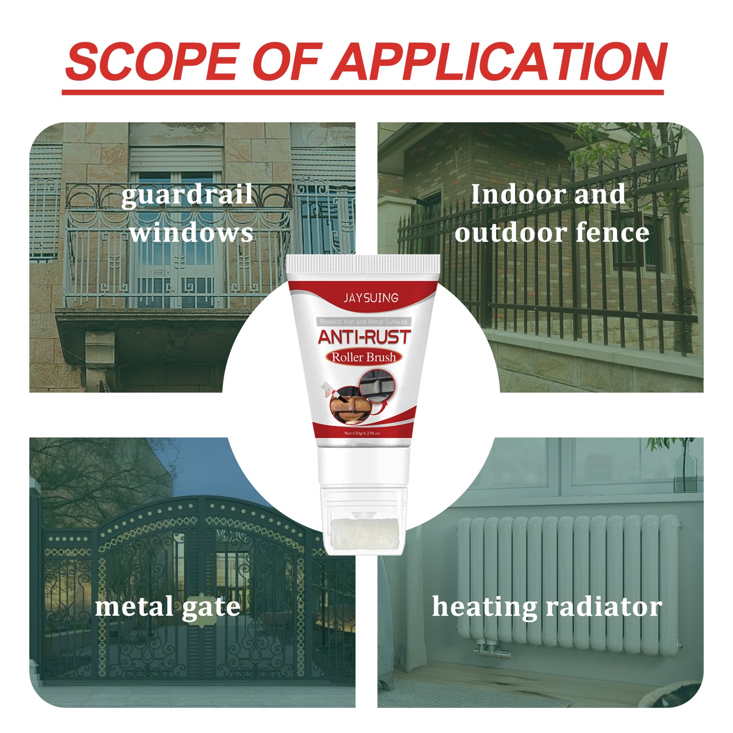 Our rust removal roller brushes contain permeants, corrosion inhibitors and surfactants. It can resist high and low temperature, crack resistance, cover rust stains, is a new type of environmental protection water-based metal paint; This product has no irritating odor, health and environmental protection. Its use method is very simple: 1. Clean the debris on the metal surface. 2. Roll back and forth on the metal surface with a roller brush to cover the rust evenly for 3.15 minutes and then dry naturally. Suitable for dry, humid, high temperature, low temperature and other climatic conditions, the paint film is tough, delicate, breathable, wear-resistant, with good fading resistance, peeling resistance, cracking resistance; Pure flavor formula, natural environmental protection.