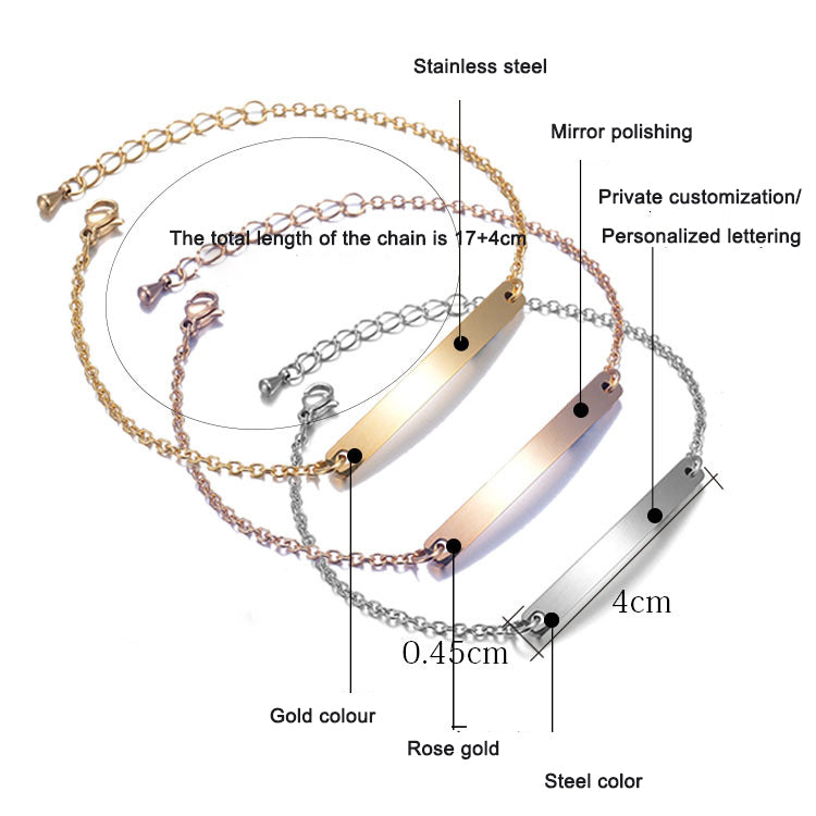 Stainless steel personalized engraved three color curved bracelet simple and personalized women's bracelet