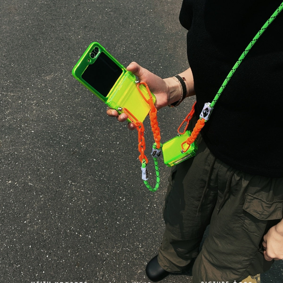 Suitable for Samsung Galaxy Z Flip5 phone case simple fluorescent green zflip4/3 folding screen protective cover - Fluorescent Green+Short Rope / Samsung zflip3 is backordered and will ship as soon as it is back in stock.